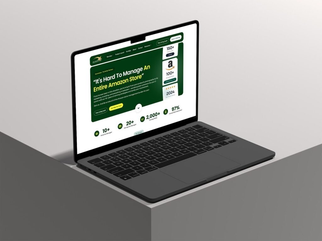 Ecommstars is an Amazon-focused ecommerce agency that helps brands manage and scale their stores end-to-end. The website is designed to clearly communicate the agency’s expertise in Amazon store management, highlighting experience, social proof, and results in a bold, confidence-driven layout.