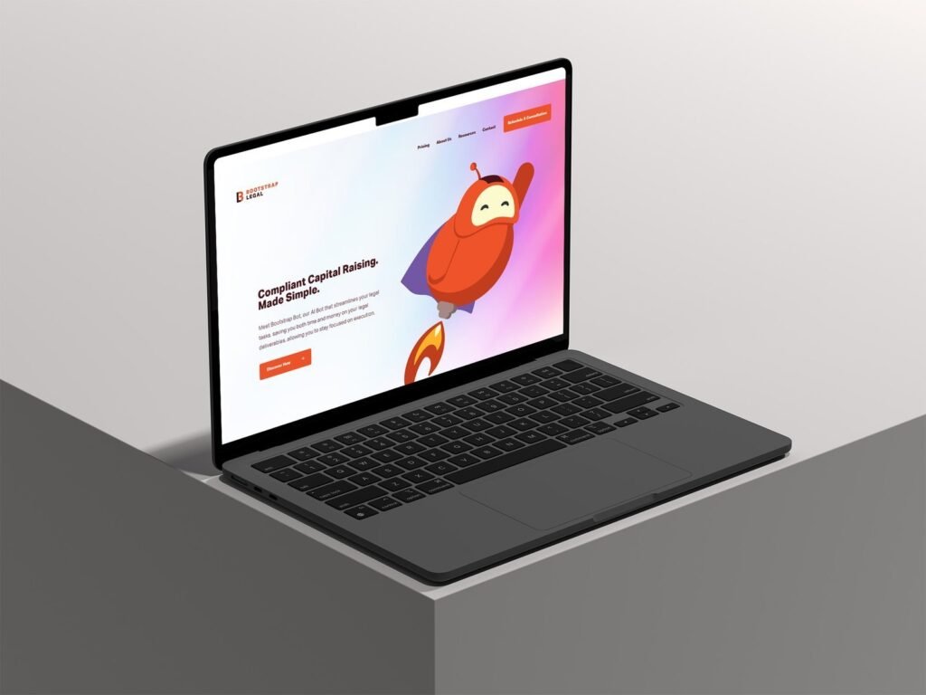 Bootstrap Legal is a legal technology platform focused on simplifying compliant capital raising for startups and growing businesses. The website presents complex legal services in a clear, approachable manner, combining strong messaging with a modern, trust-driven visual identity.